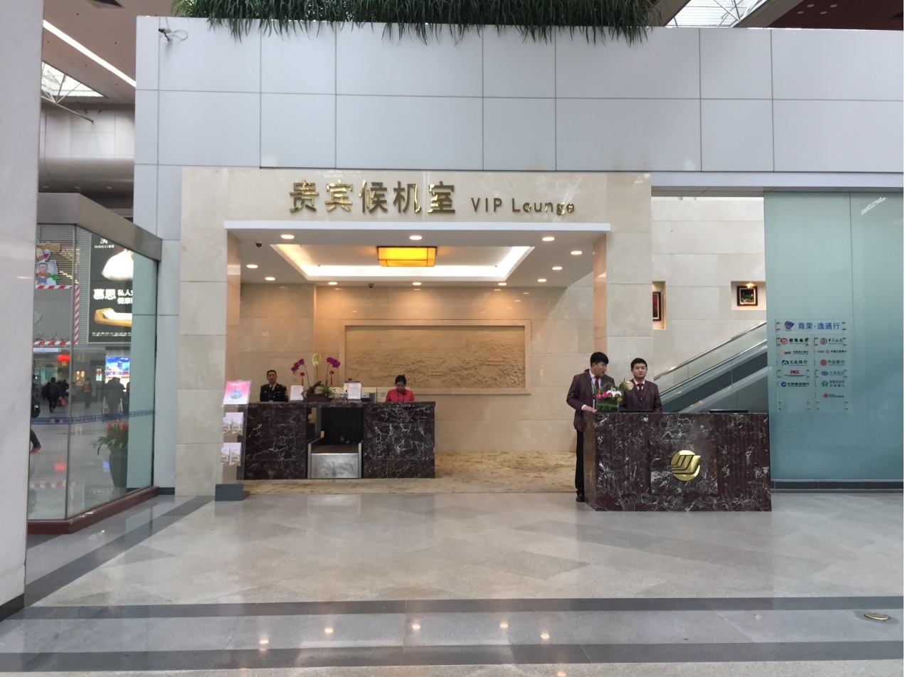 由国内出发厅1号门(图1)进入,左手边即可看到候机楼二楼机场商务贵宾厅接待处(图2)。